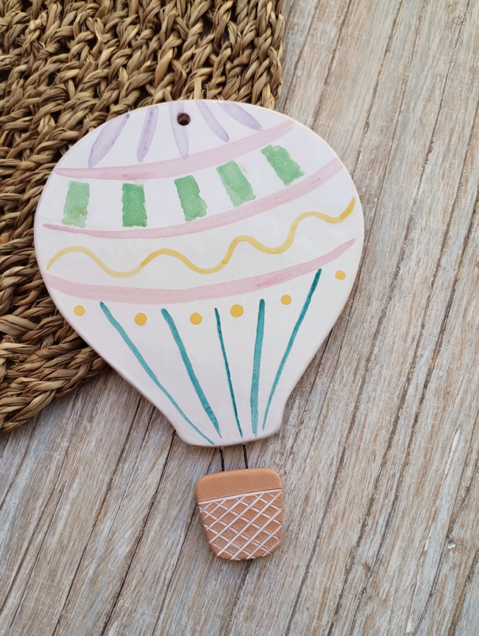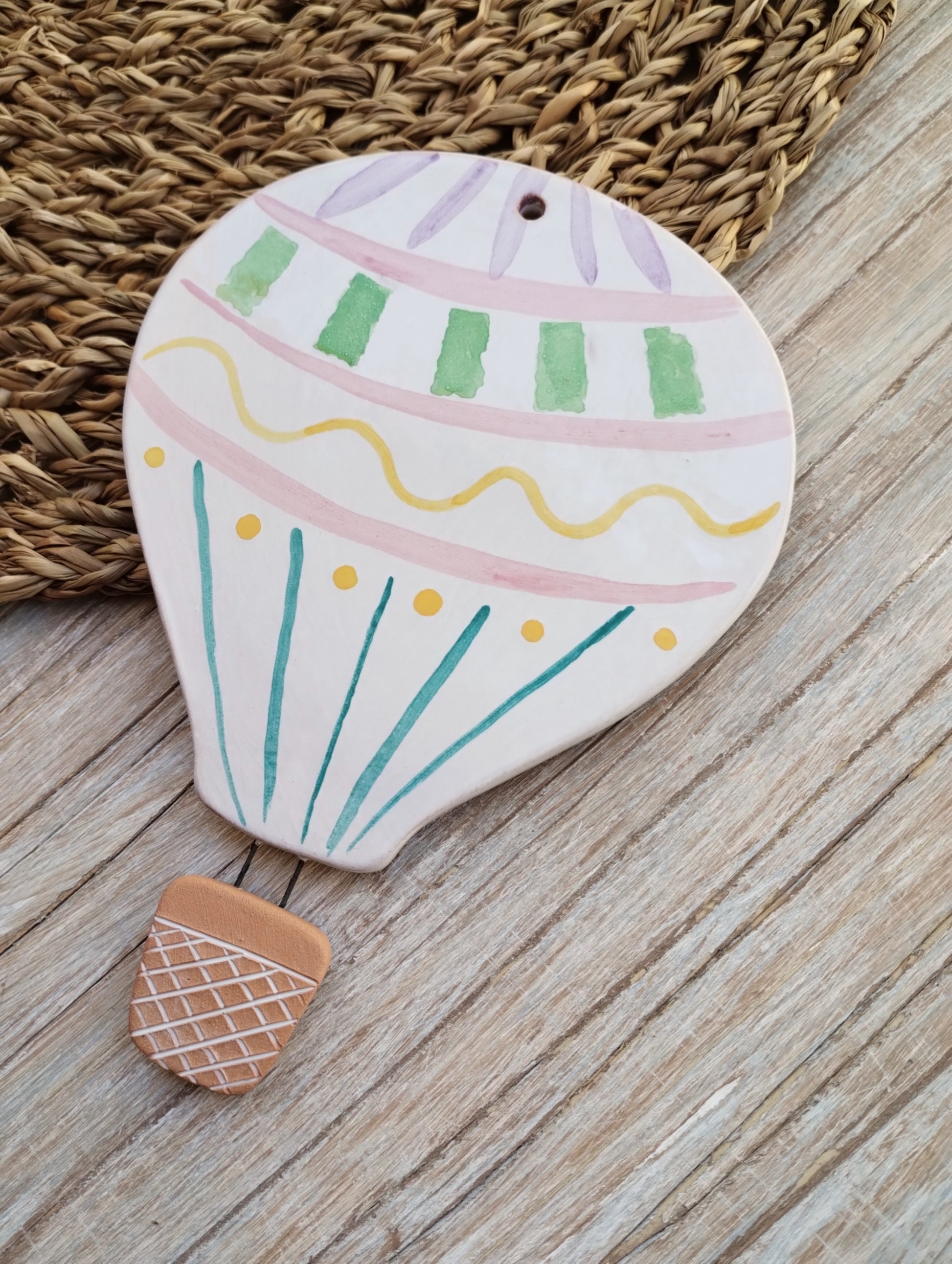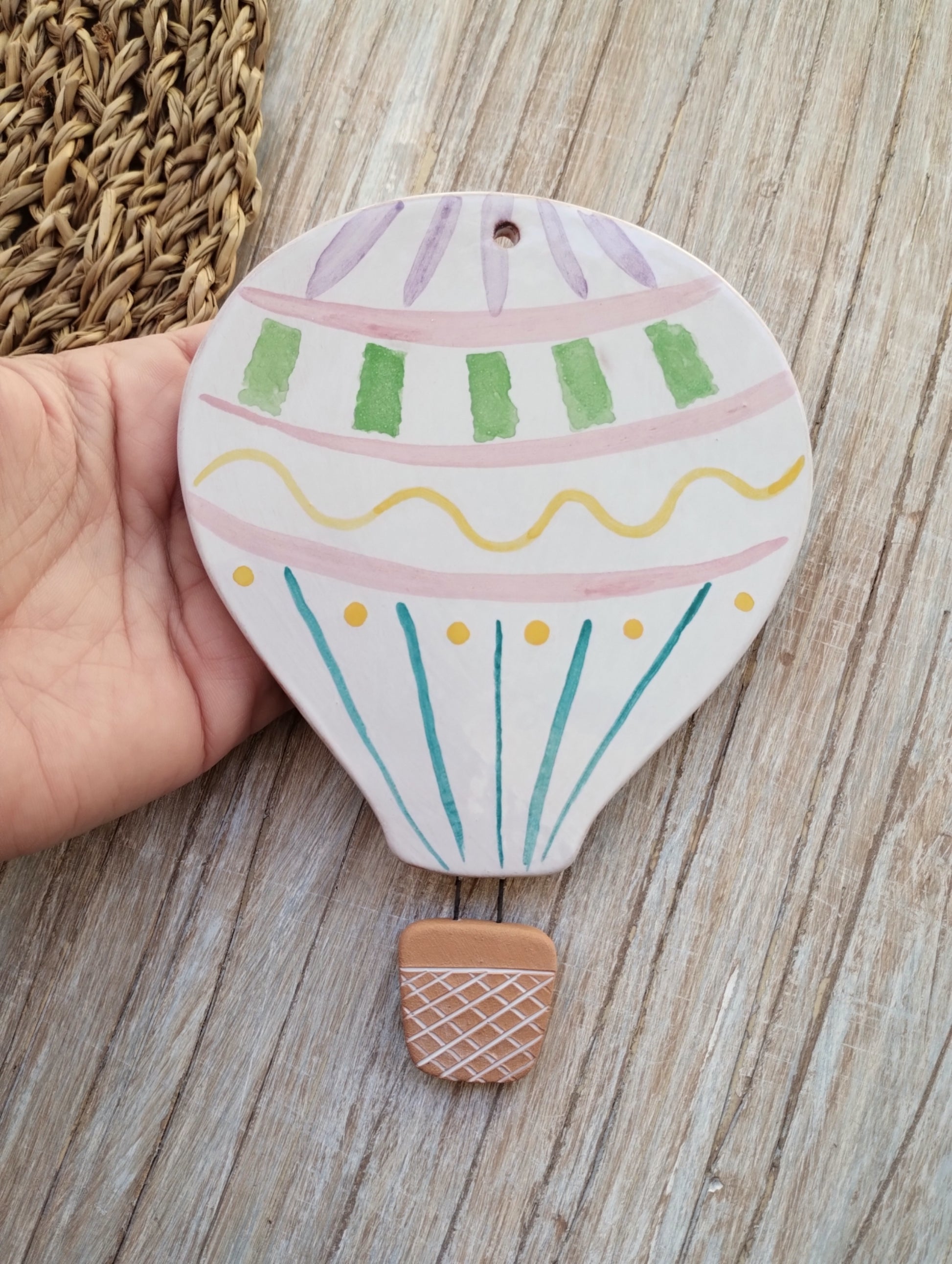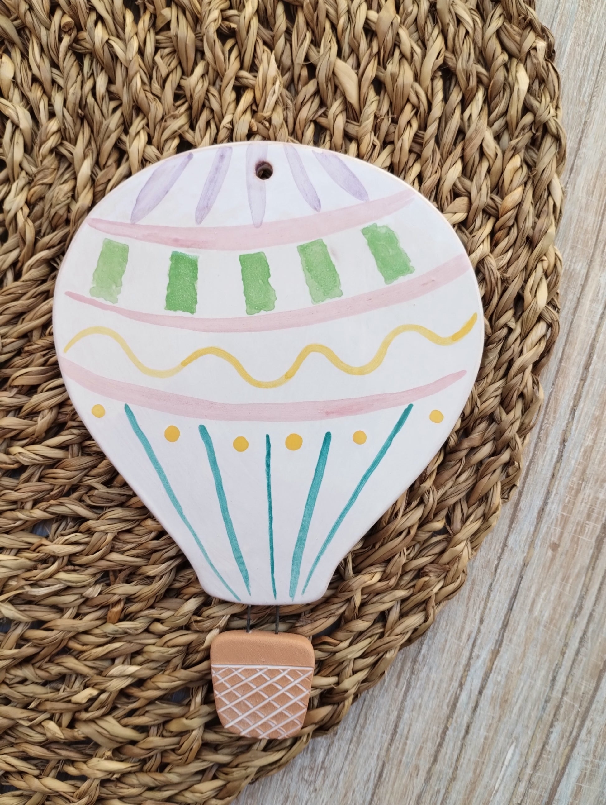 Mongolfiera da parete decorata in maiolica, è fornita di foto per essere appesa, la dimensione è di 15x11.