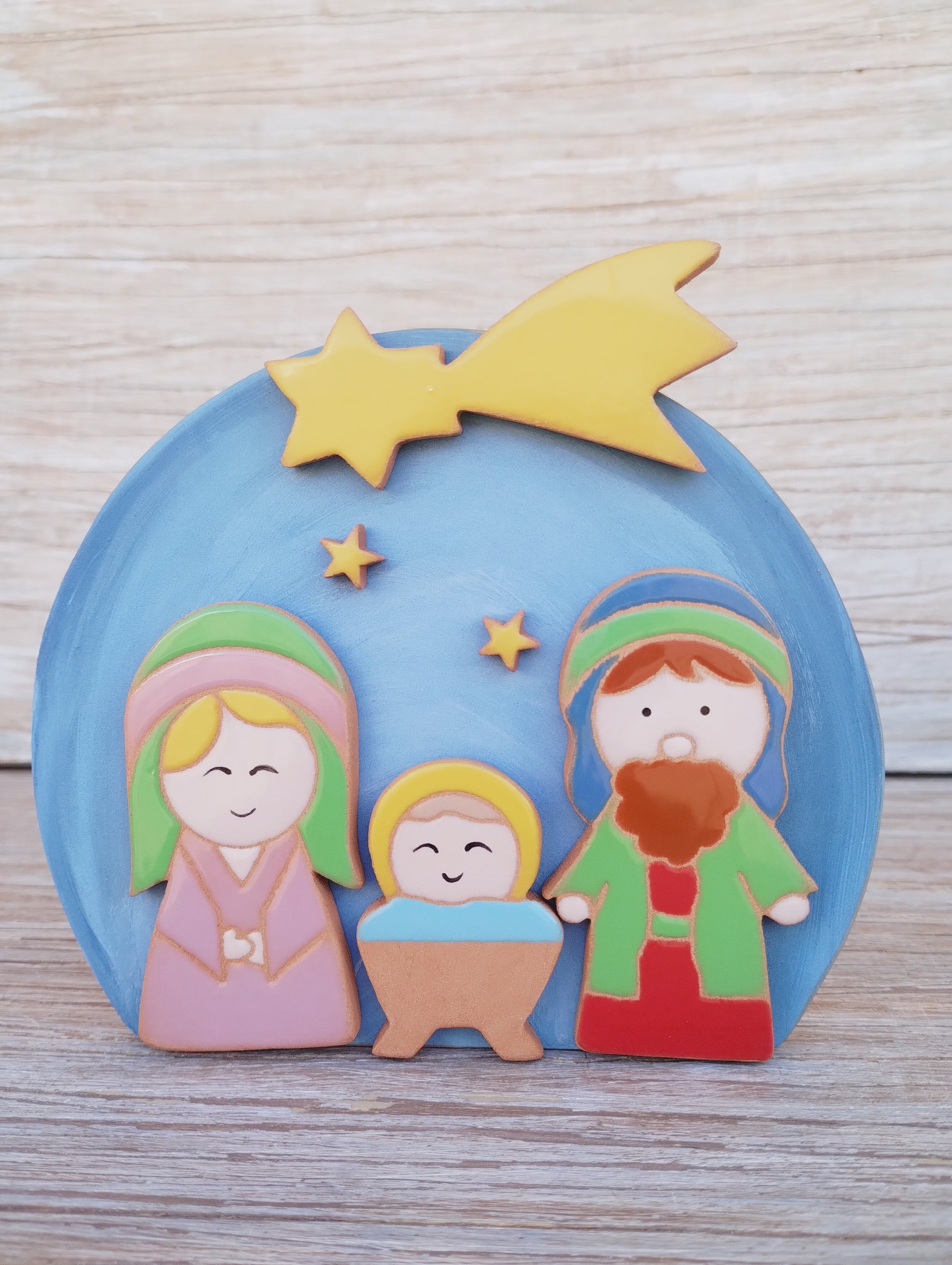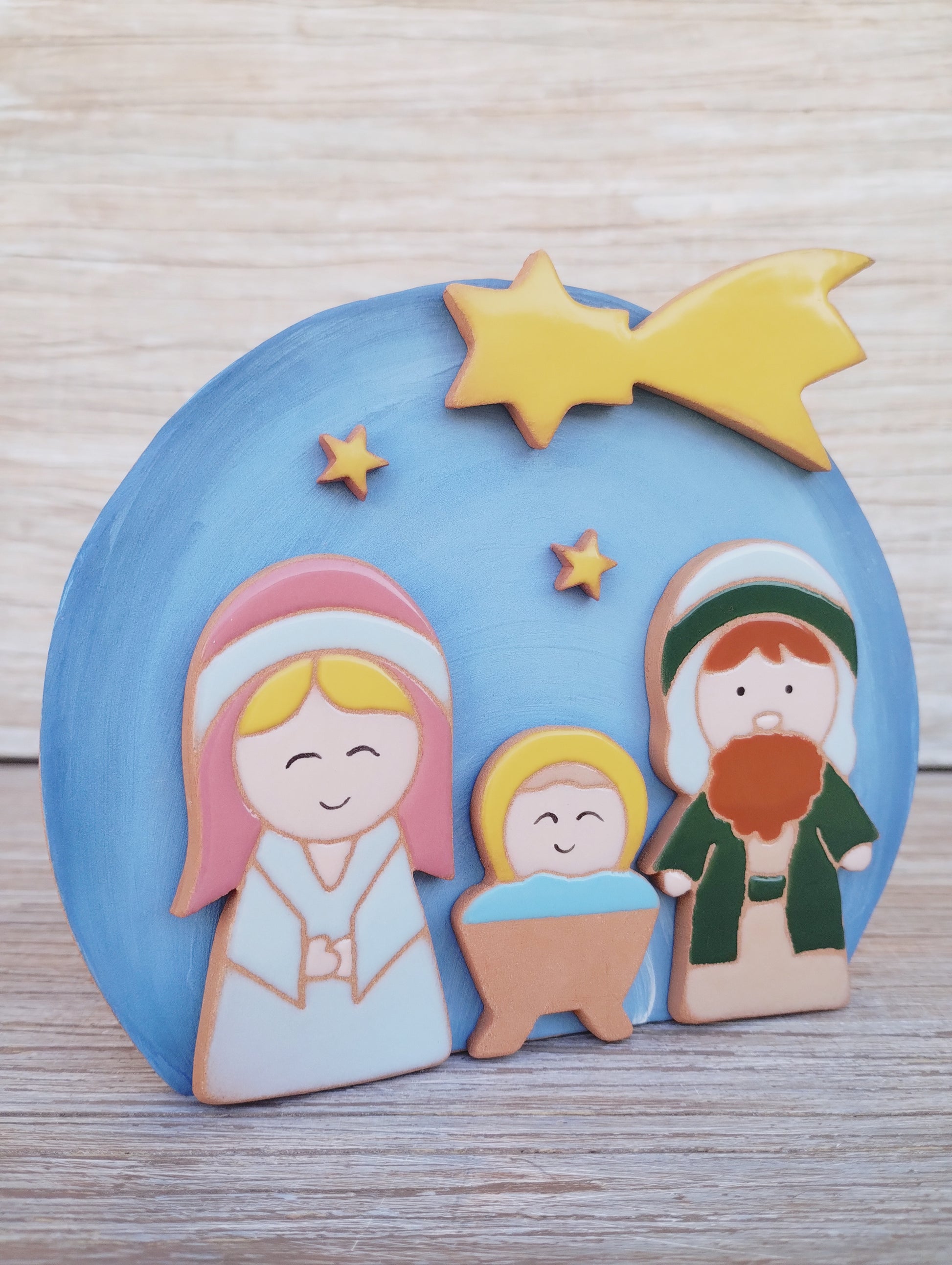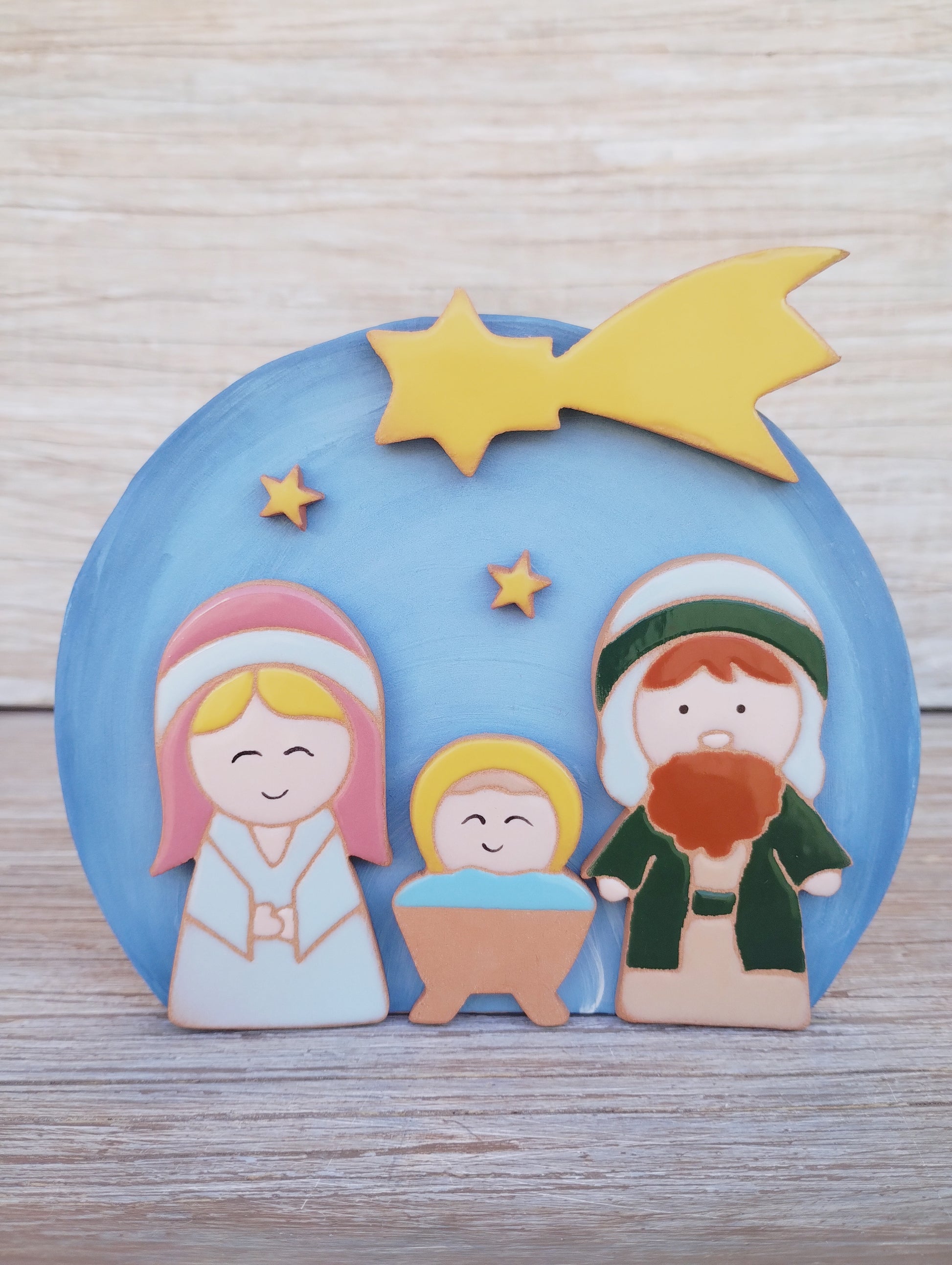 Natività da tavolo realizzata su base in terracotta e statuine applicate in rilievo decorate in cuerda seca.
