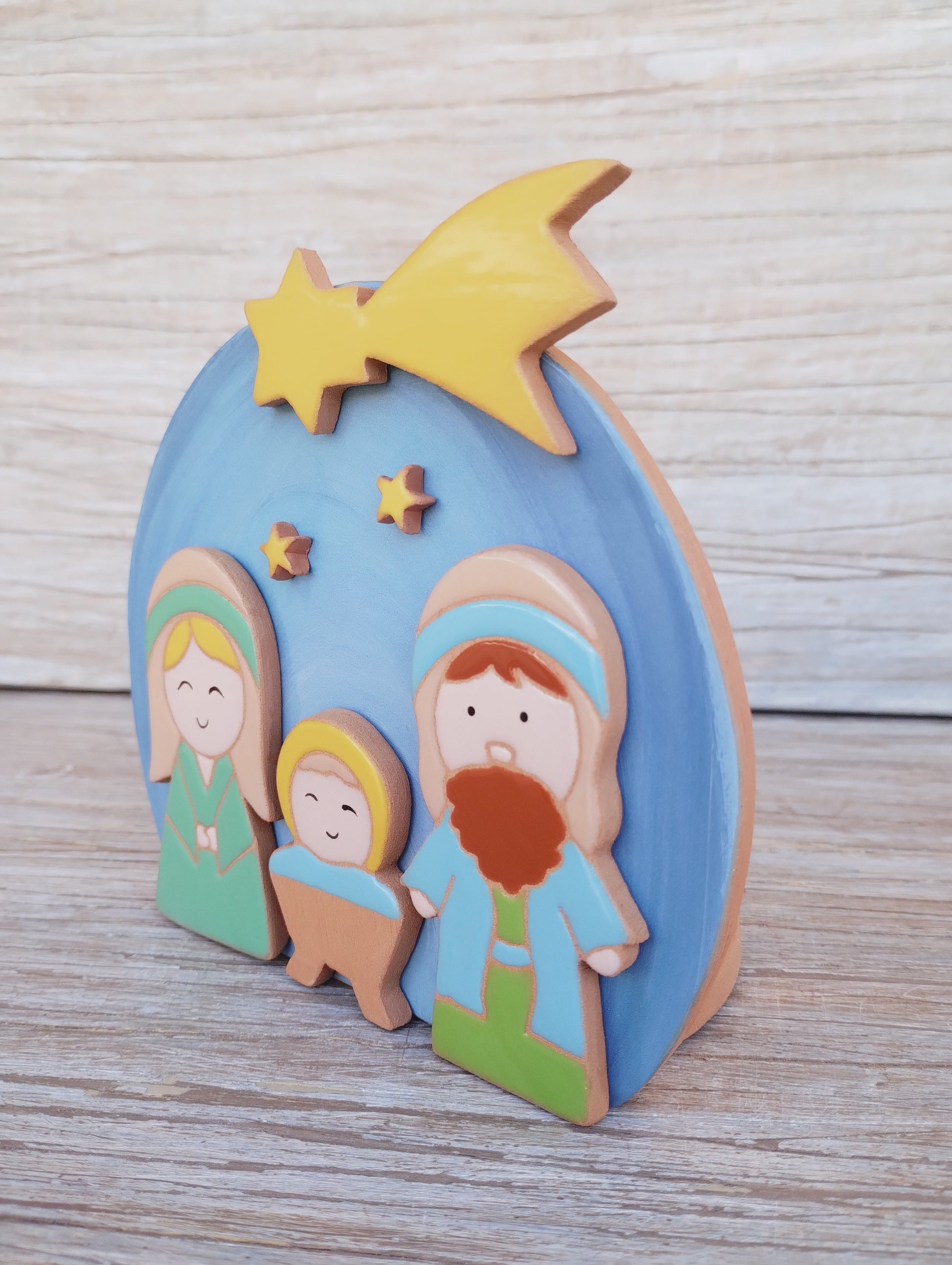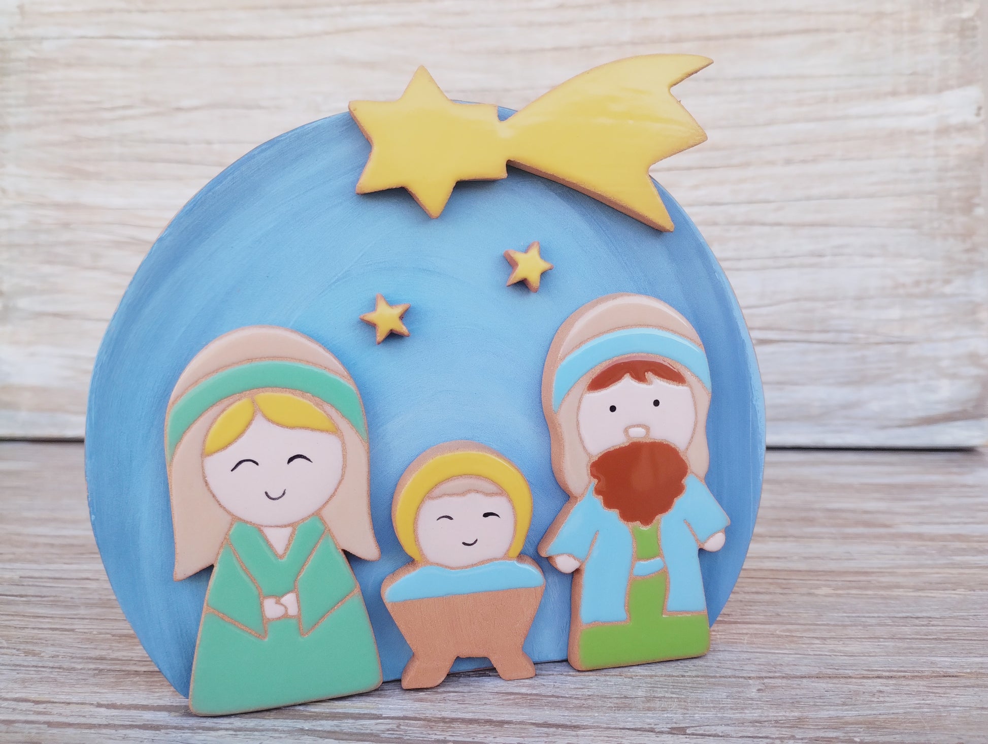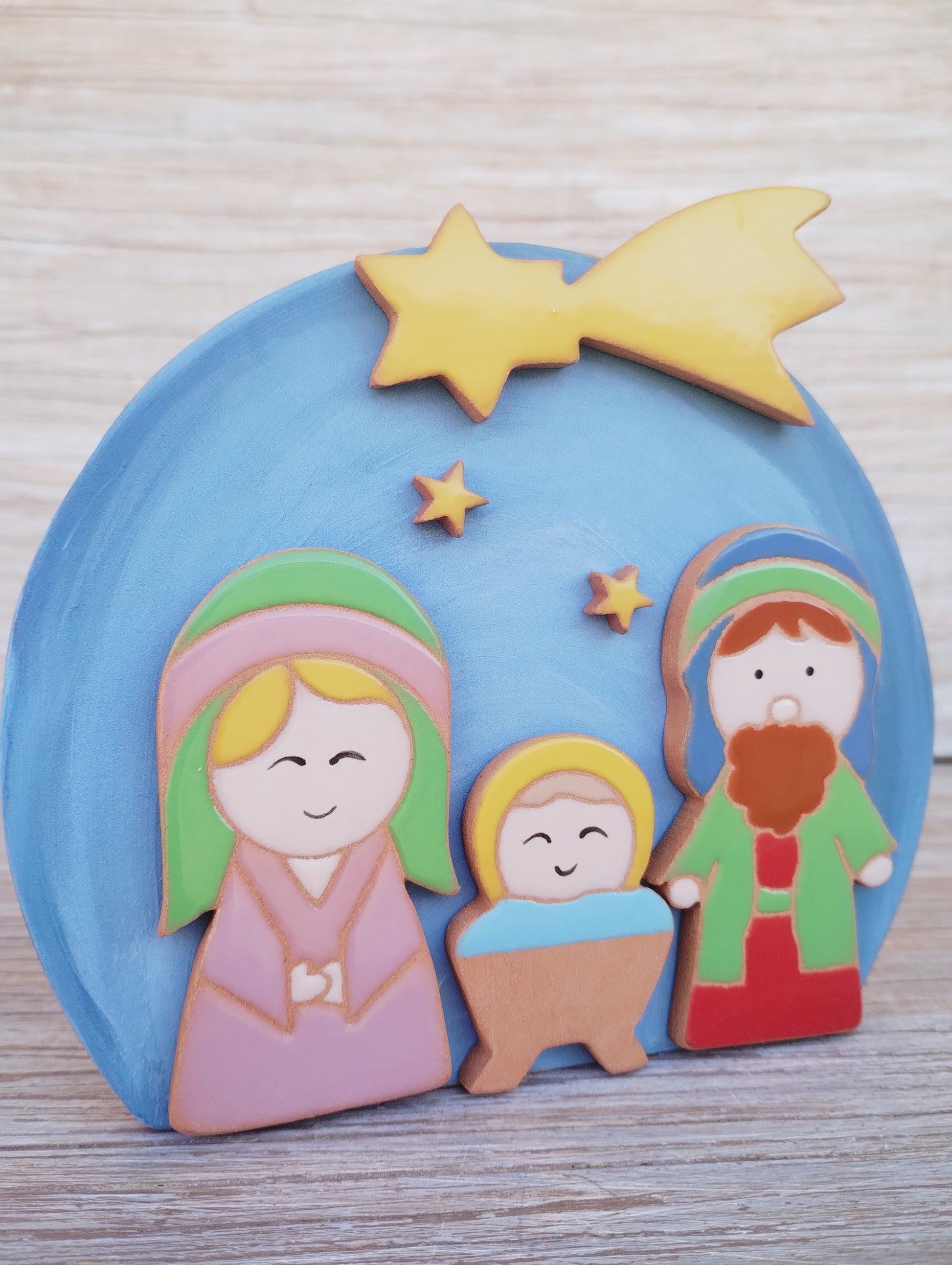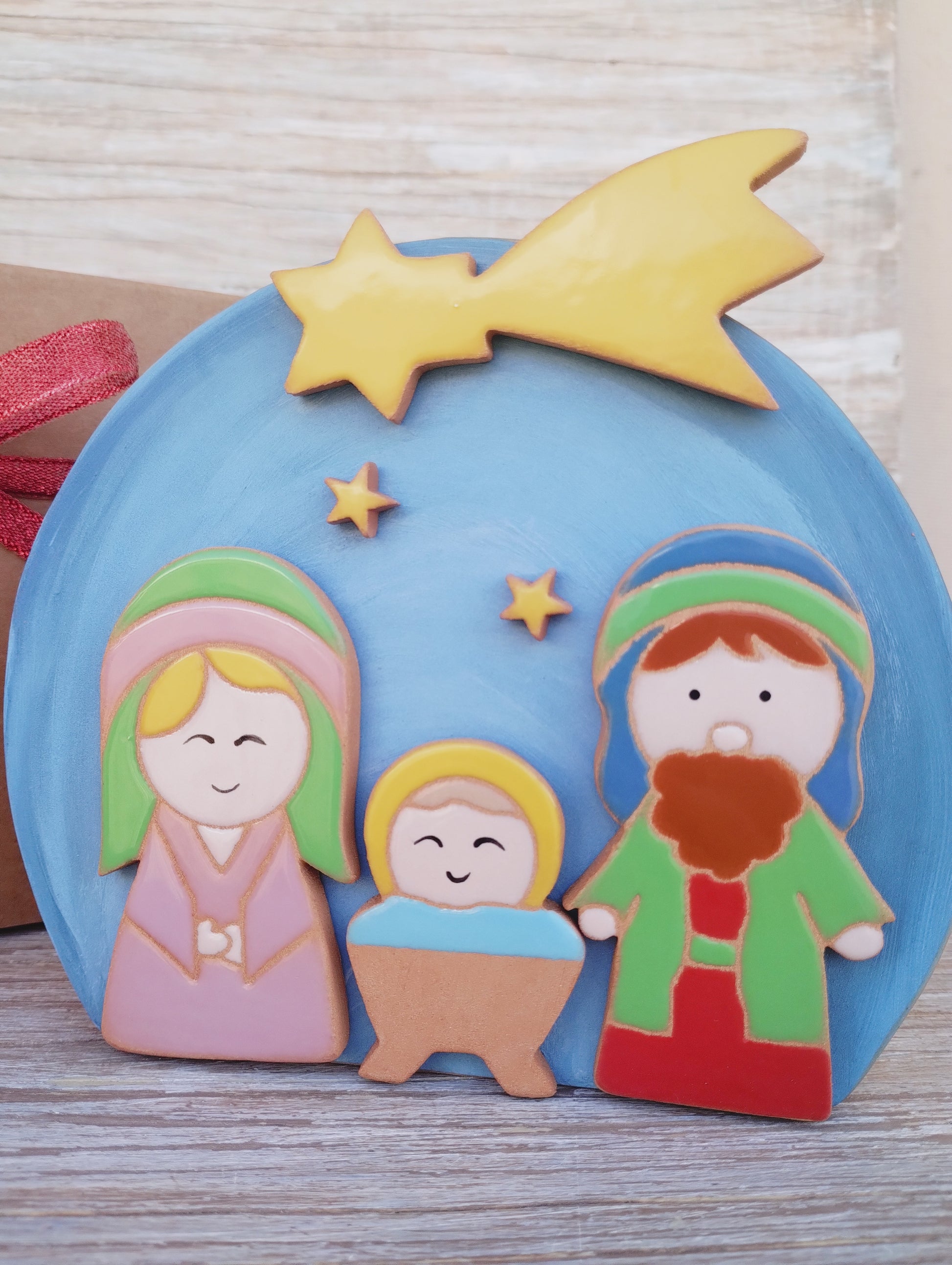 Natività da tavolo realizzata su base in terracotta e statuine applicate in rilievo decorate in cuerda seca.