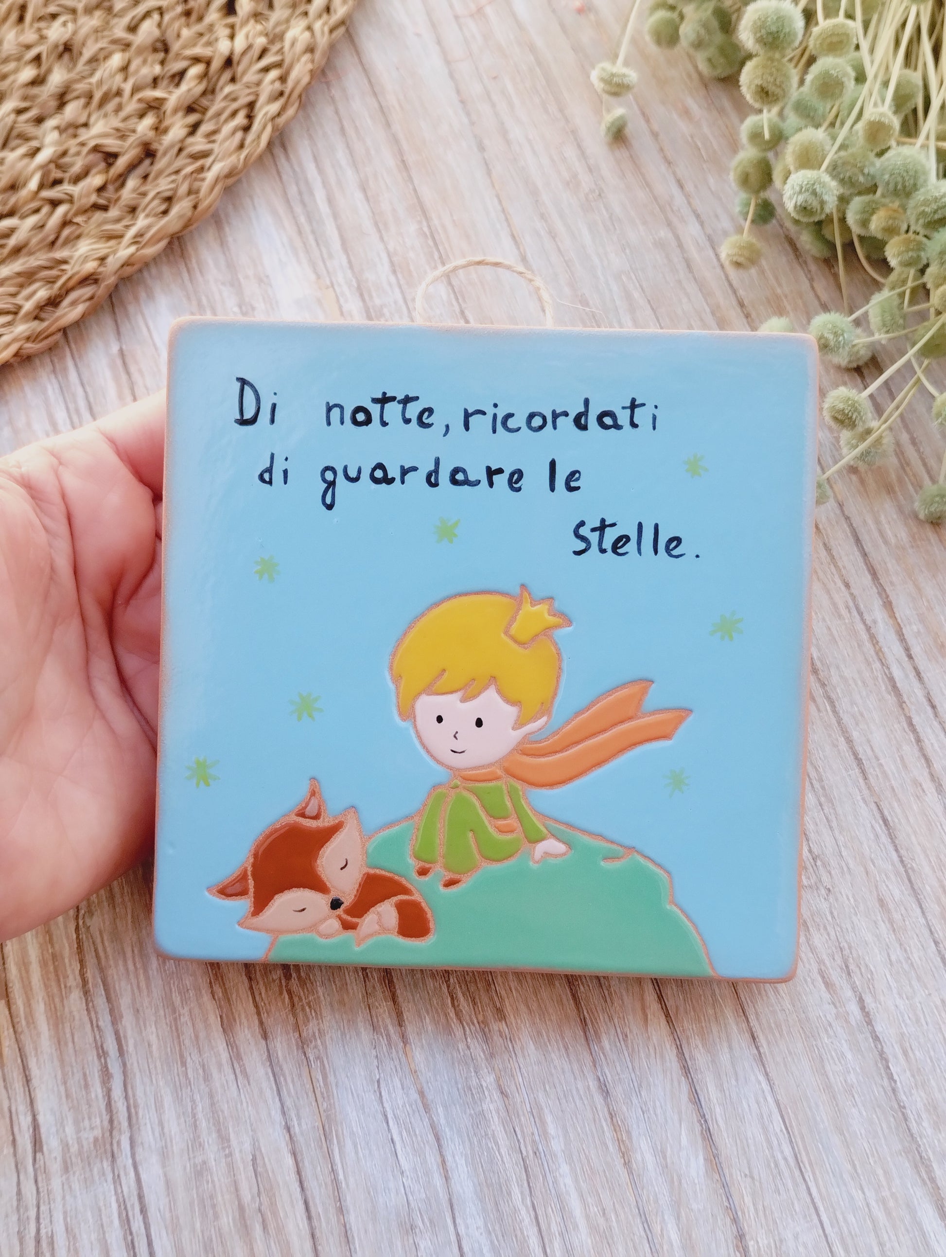 Quadretto in ceramica decorato in cuerda seca, la dimensione è di 11x11 cm circa.