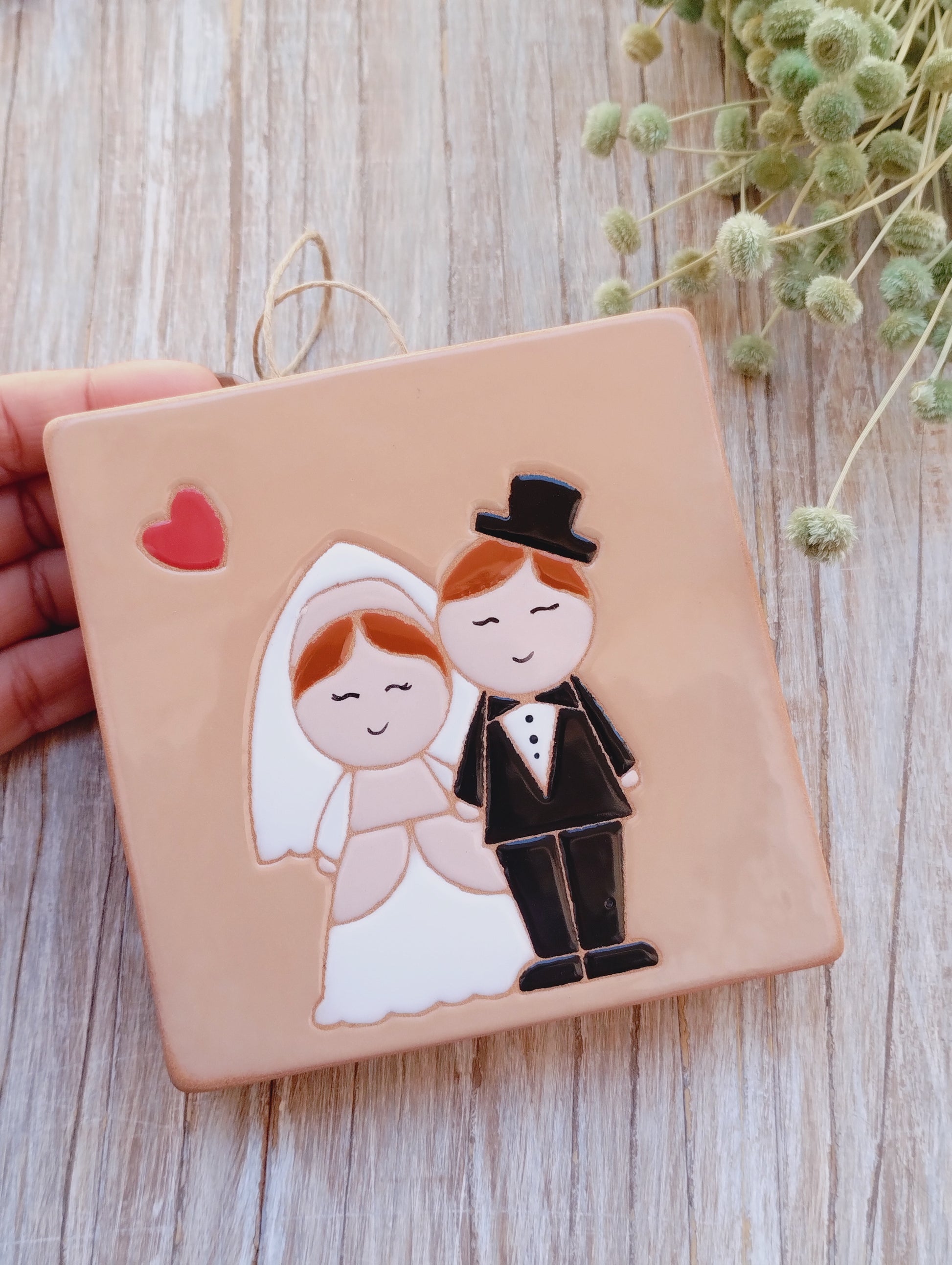 Quadretto in ceramica decorato in cuerda seca, la dimensione è di 11x11 cm circa.