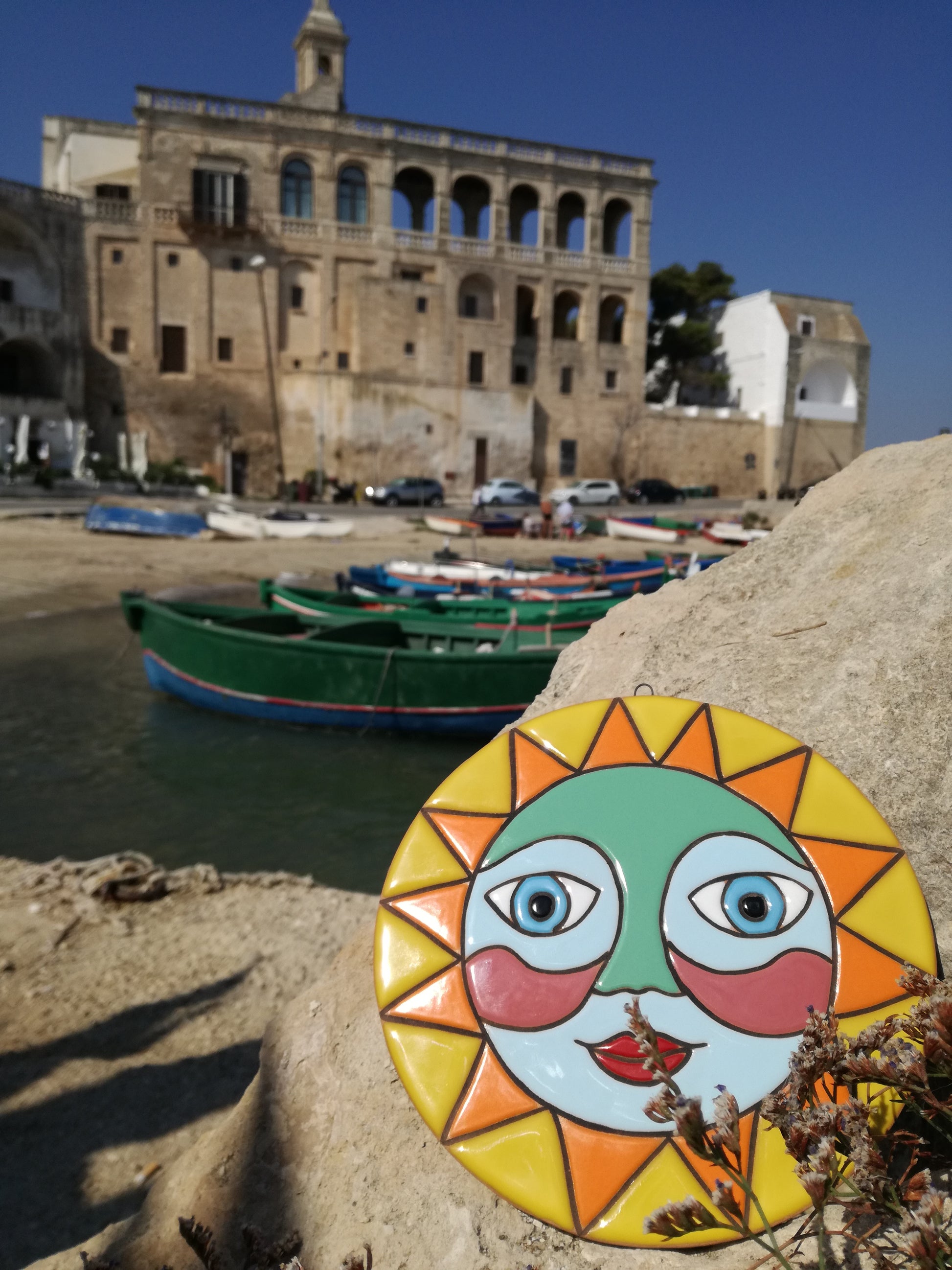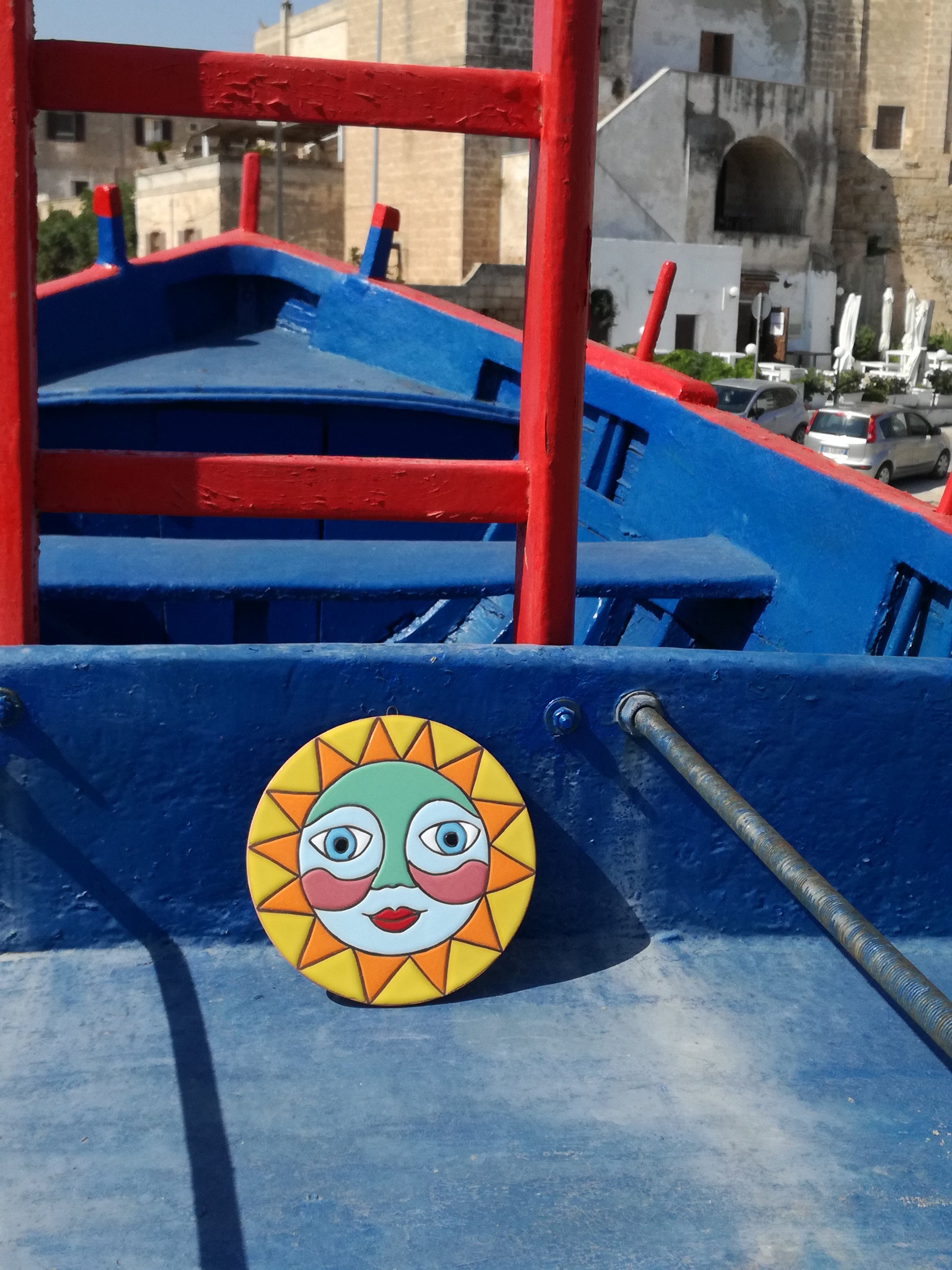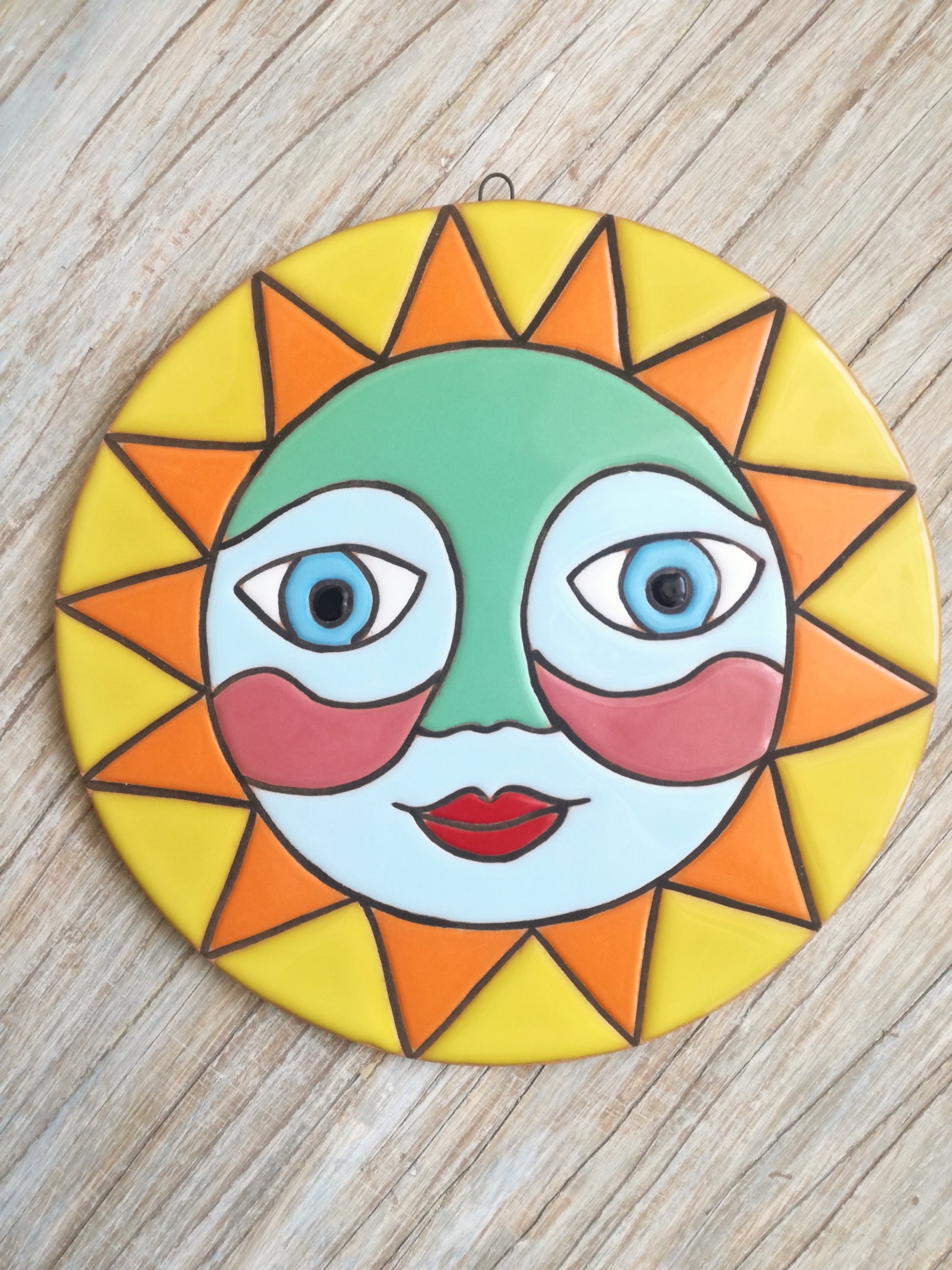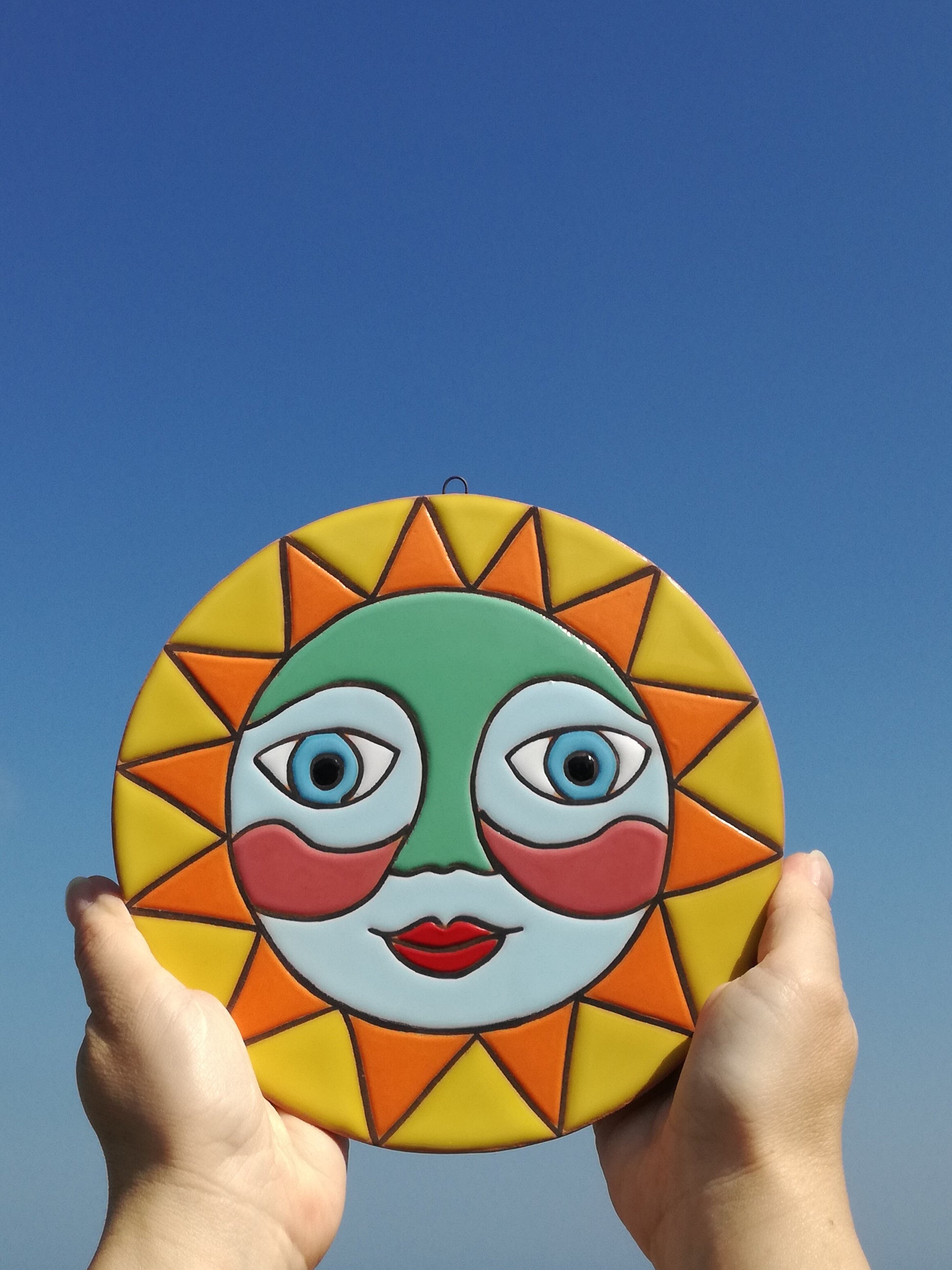 Sole realizzato su lastra di argilla "rossa" e decorato in cuerda seca.