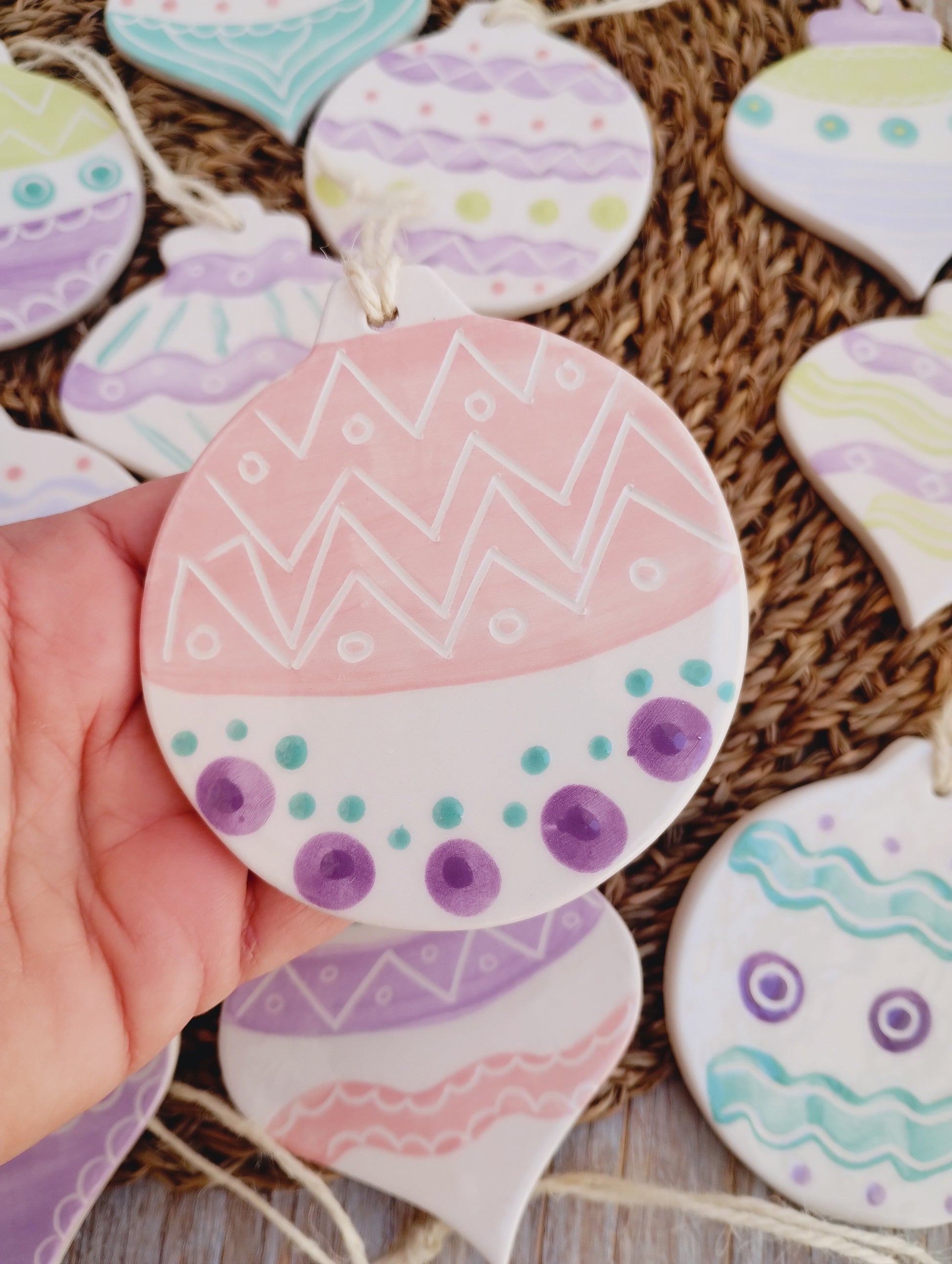 Set di ornamenti per albero creati e dipinti a mano in due forme diverse: